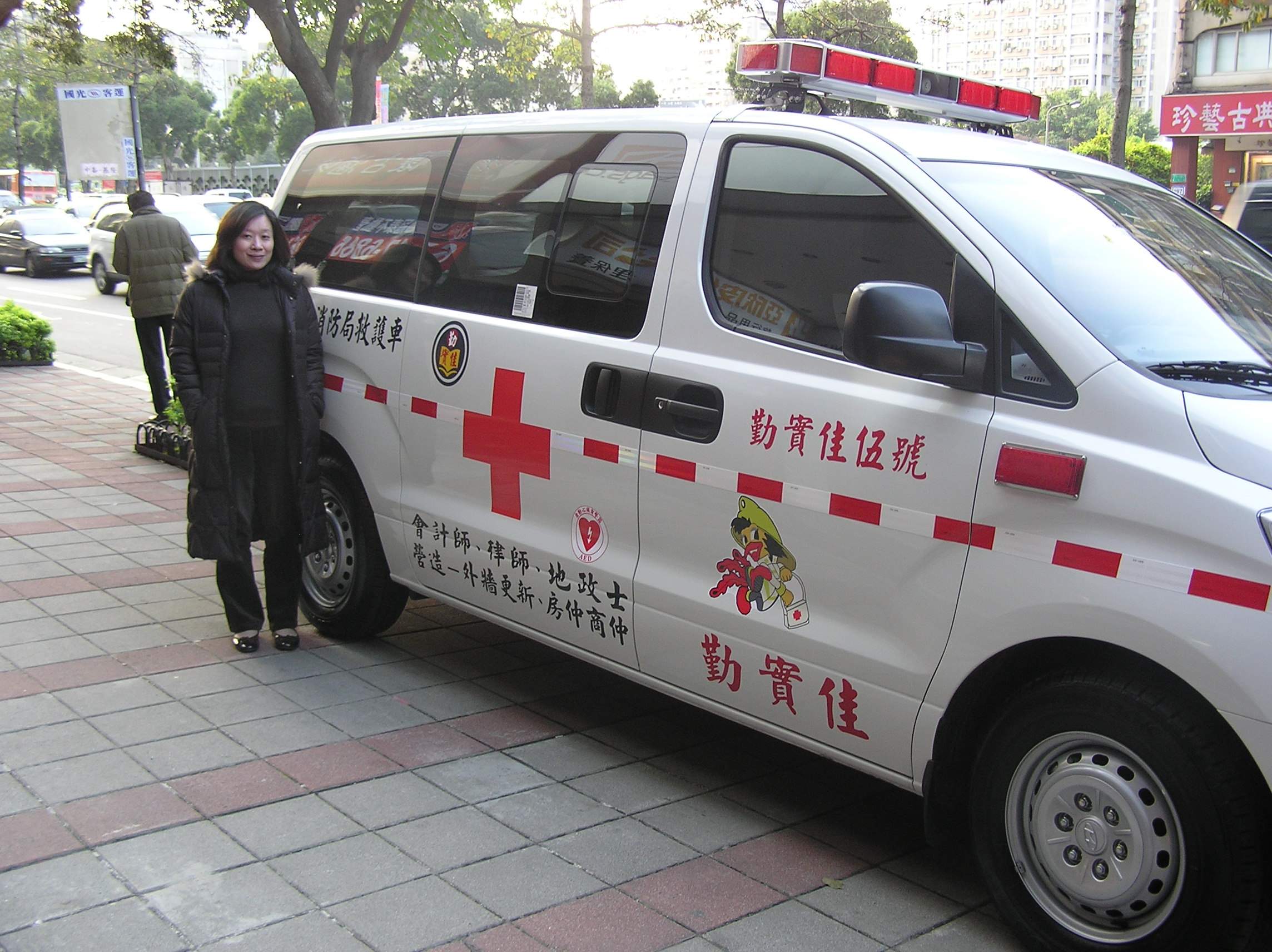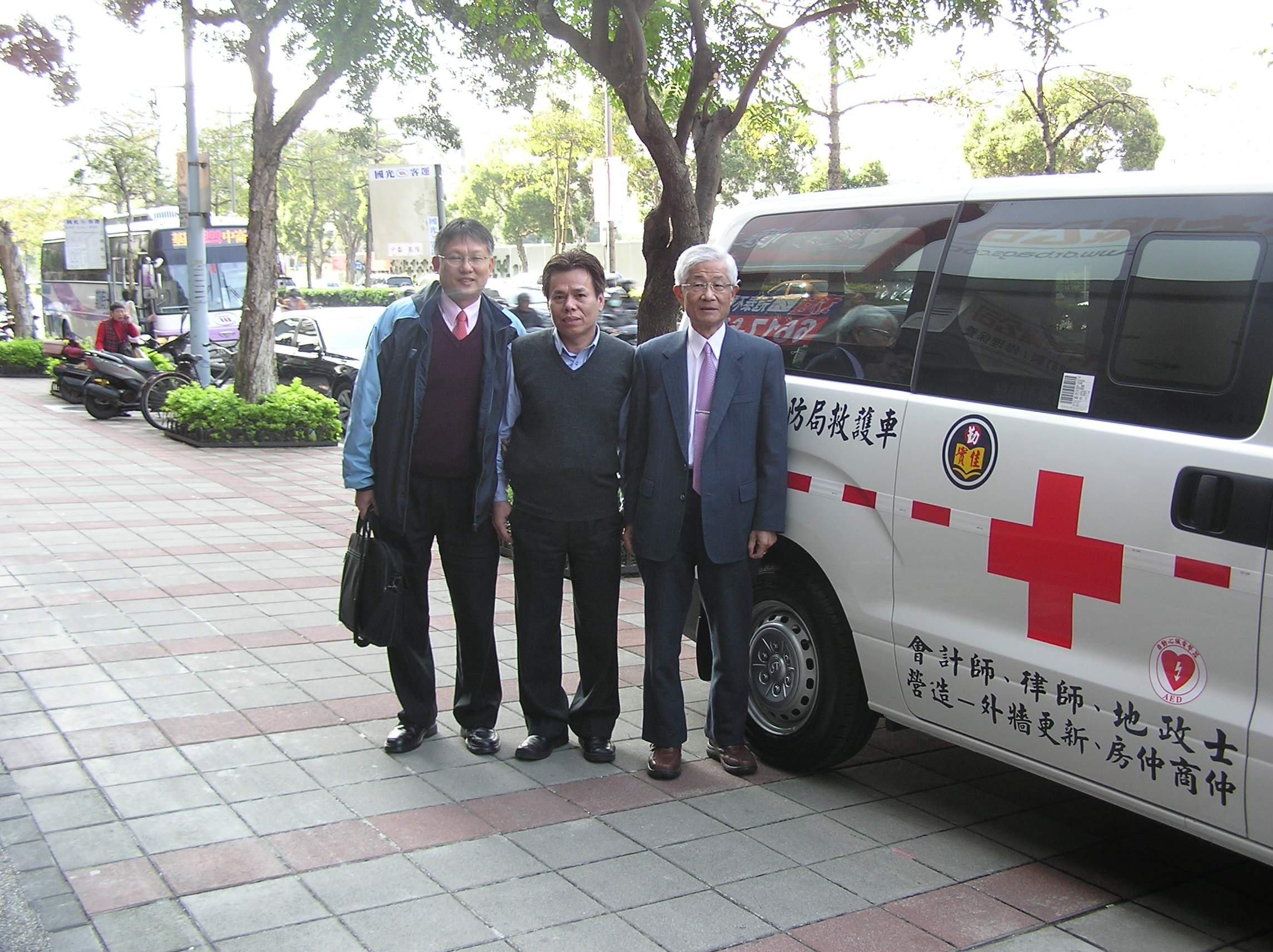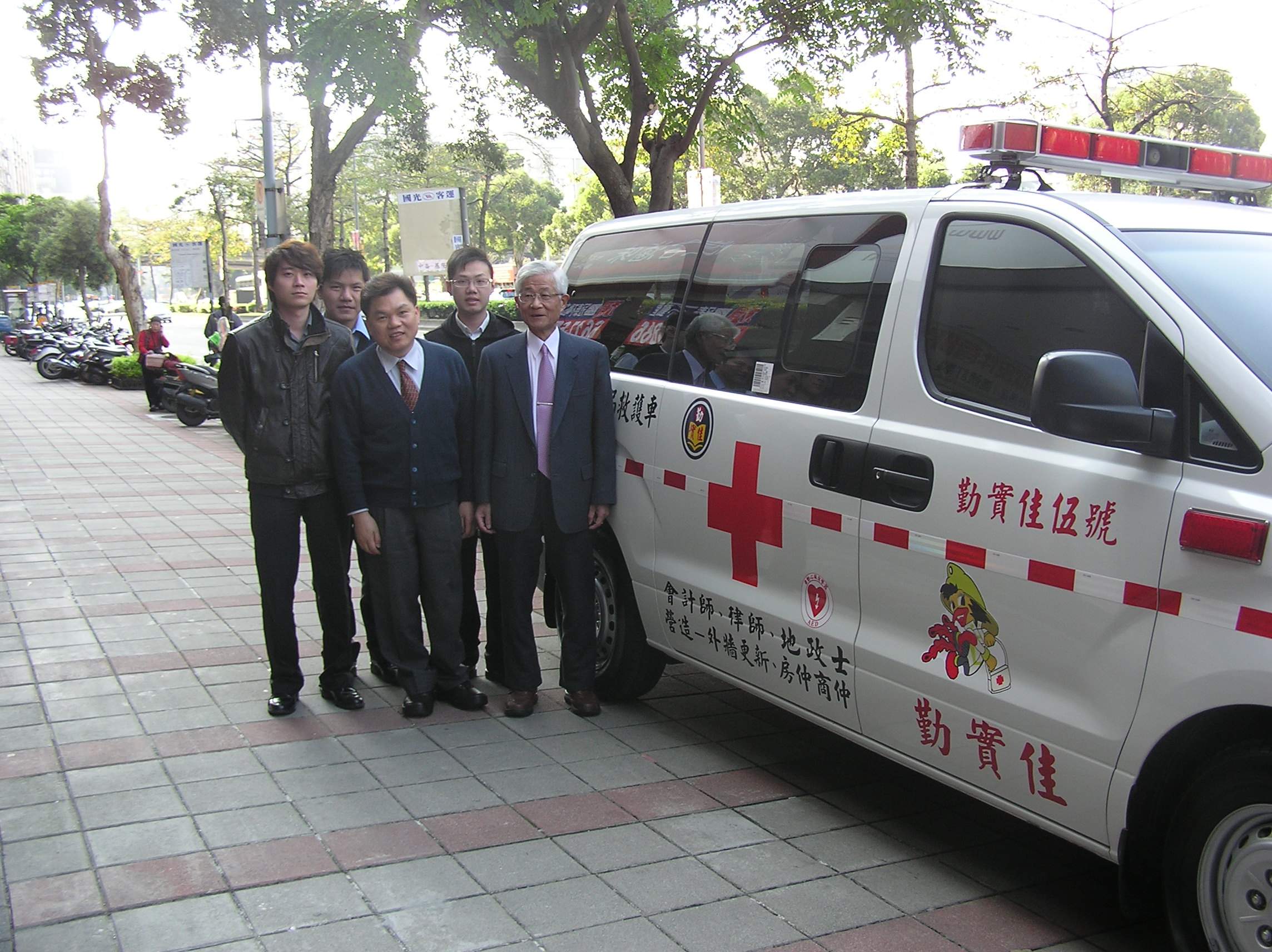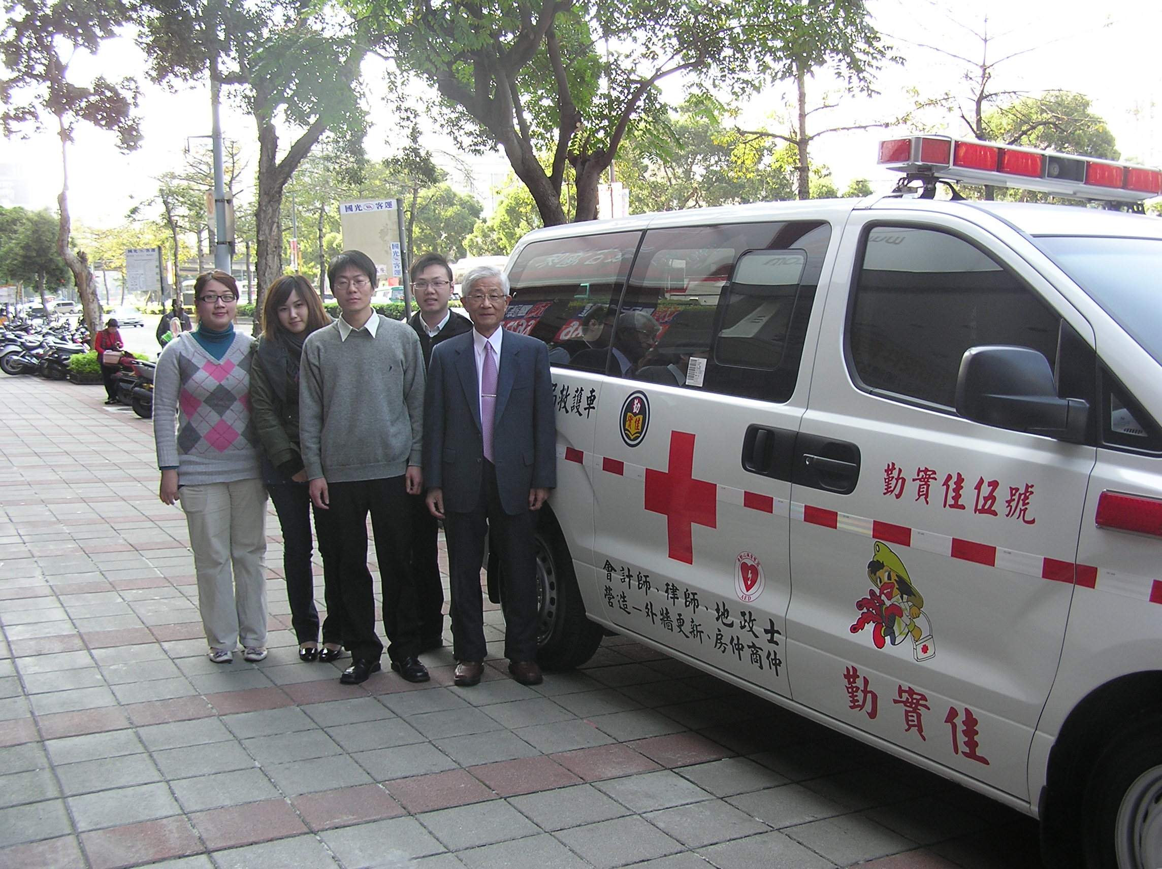 事務所同仁與救護車拍照留影